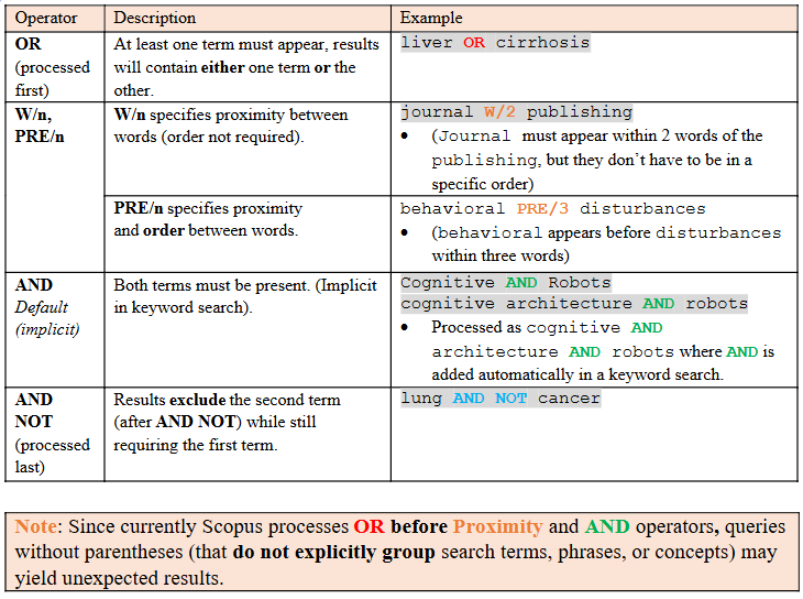 Starting in late 2025, Scopus will gradually update Boolean operator precedence to align with the current industry standards and will finalize the update in early 2026.
